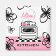 En magnet med en illustration av en reflexanordning i vitt sitta på ett svartvitt golv. Rosa depån på framsidan, lämnat brännare av spisar. Grund-delen är rosa, med svarta blommor överallt. Leta efter matchande receptbindare, receptkort och mer på Jill's Paperie.