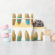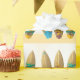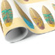 En design av tre retro träsurfingbrädor som tillsammans står på sanden. Surfingbrädadesignerna inkluderar blåttvågar, delfiner och palmträd. Denna design är kall, höften och perfekten för älskare av stranden, sommar- och surfalivsstilen.