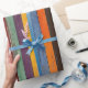 Orange, rött, grönt och vintage av gult, papper förpackning