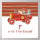 FÄRGPALETT: röd, vit, beige och brun DESIGNKOLLEKTION: En förtjusande affisch att rama in för barnkammarens väggdekor. Den har texten "F är för brandbil." En söt babykonstsamling baserad på retro-sockmonkor men handmålad i akvarell av Audrey Jeanne Roberts. Den här lilla apan med sina knappögon och randiga röda och vita halsduk som fladdrar i vinden kör sin retro-brandbil med en dalmatiner-valp i baksätet. Det finns en komplett baby shower-inbjudan och klädsel med denna design. Sök efter "Retro Sock Monkey" i vår butik för att hitta den. Vi kan också skapa föremål på begäran, bara skicka ett meddelande.