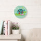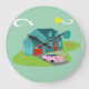 Denna Retro Suburban House Acrylic Wall Clock mönster har ett typiskt amerikanskt hem i ett typiskt amerikanskt grannskap, omkring 1950. Ett tealhem med en friboblått tak och turkofönster är perfekt kompenserade av en pulserande röd ytterdörr och verksdörr. En klassisk rosa, 1950:s slutna konvertibel bil står parkerad på pikturesque-motorvägen. Kitschy, plast, rosa flamingos ser höger hemma på bomerangformen av nymott gräs av grönt som vilar på en jadbakgrund. Den manicured gräsmatta är landskapad med vismisk träd. Kidjabönsformade moln och en gult solsprängning av sol låter dig veta att det bara är ännu en strålande dag i mitt århundrade moderna förorter.