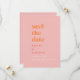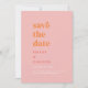 Rosan och orangen bröllop spara datum är perfekt för ett färglöst bröllop. Den unika moderna vintagens utformning har en rosa, stark orange och en pulserande palett med tropisk strandviber från roligt med färg.