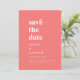 Den här sommaren är bröllop spara datum perfekt för ett färglöst bröllop. Den unika moderna vintagen har en skarp shock rosa och vit typografi med groovy-vibes i roligten.