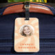 Roligt bagagetapp som innehåller ditt foto på en återtro, vågigt, vrider solljus och anpassade namn längs grund kant. All färg kan justeras i verktyg enligt mönstret.
