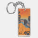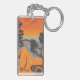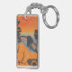 Den här nyckelkedjan visningar en slående återgång till markerad skogsdesign med silhuetterat träd och levande orange och blå toner. Kompakt och snyggt. Den ger nycklar, väskor eller tillbehör en unik konstnärlig beröring. Perfekt för daglig använda eller som en tänkbar gåva, den här nyckelkedjan gör att du kan bära biet av naturinspirerad teckning var du än är.