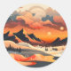 Retro Sunset Mountain liggande Runt Klistermärke