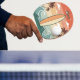 Denna personliga pingisracket har en cool surfbräda, rullande retroinspirerade vågor och minimalistiska siluetter av palmer. Designen blandar djärva vintagefärger för en nostalgisk surfaestetik.