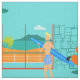 Varje dag kan vara en dag på stranden med detta Retro surfareDudetyg. 60-talstilen, den minimalist konstdesignen presenterar sol-kysst, blont, surfareduden all redo som fångar en vinka. Vår färdiga surfare stirrar ut på hav till och med dörrarna för glidningsexponeringsglas av hans beachfront hem. Han står i hans aqua färgade vardagsrum. Vi kan se den moderna en aqua och en turkos, stenväggen och mitt- århundradet, orange stol. På motsatssidan av den glass dörren kan vi se en uteplats. Det okända som, finns det en guld- sandig strand och att svänga palmträdet, sparkling, påfågelblåtthav och en aquahimmel. I avståndet kan vi se en vulkanisk ö för kricka, som är dormant för tiden som den är. Surfareduden är hållande en blåttsurfingbräda, och ha på sig blått, stiger ombord den mönstrade tikien kort. Fånga något vinkar och delar någon kärlek med denna kitschy sommardesign!
