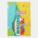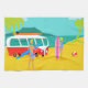 Varje dag kan vara en dag på stranden med detta Retro Surfer Couple Kitchen Towel. 1960-talets minimalistiska konsthantverk i stil har en roligt-vänlig, sol-slitande, spännande, som söker ett par redo att fånga en våg. Inställningen är en tropisk öoas med en strand av guldsand, som svävar, grönt handflatan träd, ett mousserande, blått hav och ett akvarium himlar. I avstånd kan vi se en tealvulkanisk ö, som för närvarande är vilande. På stranden kan vi inte undgå att notera den söta åktur som förde våra par till deras drömdestination. Det är en modern, röd och vit skåpbil med en orange och gult som sitter på toppen. Även om vi inte kan vara säkra, är det rimligt att anta att insidan av skåpbilen har groovy, skugga och sinneslukt! Surfer Killen och Beach Babe har matchande sol-kyssade tankar, sol-blekt hår och blå, tiki-mönstrade baddräkter. Surfer-killen håller en blå surfboard. Beach Babe står bredvid hennes tvåtonade, rosa surfboard. När man ljuger i närheten finns det en röd och vit strand boll som väntar på att uppfylla sitt sommaröde. Fånga lite vågar och lite kärlek med den här kitschystiska sommardesignen!