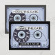 Retro svart kassettband Spara datum-kort. Meddela din stora dag med denna slående retro-kassettbanddesign i svart och mjuk grå. Perfekt för musikkärlekare, modiga par och kantiga eller moderna bröllopsteman. Ett stilfullt och nostalgiskt sätt att sticka ut ur mängden.
