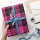 Retro svart rosa jul nyår tartan randigt inpackningspapper.