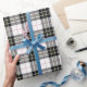 Retro svart vit jul nyår tartan-rutigt inslagspapper.