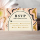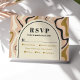 "Retro Swirl Arch-Bröllopet OSA" kombinerar ett groovy retroswirl mönster med en elegant båge och en sofistikerad färg-palett med rosa, svart, guld och kräm. Utformningen fångar kärnan i en snyggt, en gammal tid, samtidigt som den förblir färsk och contemporary. Den här OSA kort fungerar inte bara som ett funktionellt biet för gästerna att visa sin närvaro, utan också som en keepé som ekar estetien i er speciella dag. Det är en vacker blandning av vintage och modern perfekt för ett par som tittar att göra ett påstående med sitt bröllop-kontor.