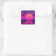 En nybelyst solnedgång med en retro-syntetvågsestetik, med en rutnätsliknande horisont som tonar in i avstånd, med handflatan träd som silhuverts mot himmel. Paletten färg är en blandning av nyp, lila och blues, som framkallar ett 80-talets futuristiska-vib.