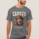 En cool retrodesign för T-shirt från 80-talet med ett tema från datorspel, föreställande en apa i en pirathatt som håller en öl och texten Pirate Monkey, Play Now, Press Start Button.