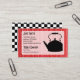 Stäng av tekannan mot bakgrund av små polka dots på rött med svartvita kontroller. Du kan anpassa den med din egen text. Perfekt till en tebutik eller tefirma. Retro coola!