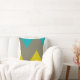 Retrogeometrisk design med kvadratiska accentstolpar i senapsform, gult, teal och interpolering. Denna utformning upprepas på båda sidor om kudden.