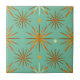Retro Teal Orange Starburst Pattern Kakelplatta