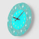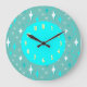 Retro Teal White Stars Gult Nummer Stor Klocka