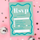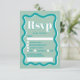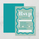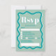 Retro teal blue-kurvbläddring vågigt bröllop OSA-kort. All text, namn och bakgrundsklipp i färg är anpassade för dig att blanda och matcha bröllop