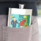 Älskling, jag är hemma! Den här Tecknaden för Retro Space-åldern En kolv får dig att känna avundsjuka på tecknadens par på en kolv! Utformningen har en turkobakgrund med tealtegel och en oliv grönt konkamera. Framåt och mitt, det finns en framstående martini-villig affärsman i blå kostym och orange slips. Hans blondinska bombskal av en troféfru bär en röd tråd och håller en bricka martinis. Va-va-va-voom!