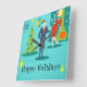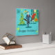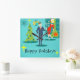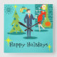 Den här Retro Helgdag-Tecknaden par Wall Clock sätter dig i helgdag anda. Utformningen har en turkobakgrund med tealtegel och en oliv grönt konkamera. Det finns en teal-, starbväggklocka och en tvåskiktslampa i nyans av gult, blått och svart. En grönt Julgran är försedd med en gult stjärna och prydnadsföremål. Framåt och mitt, det finns en framstående martini-villig affärsman i blå kostym och orange slips. På hans sida bär hans blonda bombskal av en troféfru en röd vifflklänning och en julhatt medan han håller en bricka martinis. Under bild ligger två vintagar nära ord, "Glad helg". Fa-la-la-di-da!