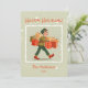 Hej, brevbäraren! Var är mitt "Glada högtider"-kort? Är det på väg? Det ser ut som han jobbar hårt för att få det att hända. Här är ett sött retro-julkort i den roliga mitten av seklets tradition. Det är ett bra kort att skicka eller ge till vänner som förväntar sig eller hoppas höra ifrån dig över julen, på ett lättsamt säsongsmässigt sätt.
