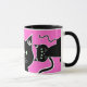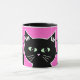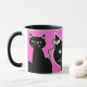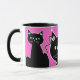 Tre svarta katter på en mugg. (Röd) bakgrundsfärg kan ändras.
