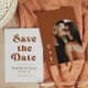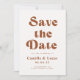 Retro Terrakotta Bröllopsinbjudan Spara Datum är ett enkelt men elegant sätt att berätta för dina nära och kära att du ska gifta dig. Oavsett tillfälle är det ett unikt sätt att tillkännage ditt kommande bröllop.