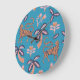Retro tiger, handflatan träd, blomman mönster stor klocka