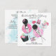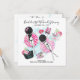 Inbjudan till möhippa strandfest helgutflykt med retro tjejer som solar sig på munkflottar i en pool. Helgens program på baksidan. Brudens monogram på strandväskan. Allt är helt anpassningsbart!