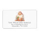 En festlig julfraktsedel med en textmall för att anpassa med ditt namn och adress, denna design har en fantasifull retro Tomte med långt flödande skägg som sitter med en kvist julhagtorn mellan tårna.