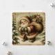 Lägg till festlig charm till din semester med denna retroillustration av Tomten. Med en glad Tomte som bär en säck full av inslagna presenter bland snöiga träd, fångar detta konstverk julens magi och nostalgi. Perfekt för säsongsdekoration, julklappar eller personliga skapelser. Du kan lägga till din egen text eller applicera denna design på valfri produkt för att göra den unik.