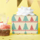 Roligt och festligt retro julpapper i mitten av seklet med rader av turkos- och röda julträds silhuetter på en vintage beige bakgrund