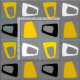 Retro mönster i mitten, svart, vitt och gult på grått-bakgrund