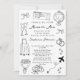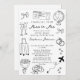 Retro Traveling från Miss till Inbjudningskort för möhippan - En vismisk, vintage inspirerade hand plockade och en handskriven mall för typsnitt inbjudningskort för möhippan. Med funky, hand plockade illustrationer av ett boardingkort, globe, klickande champagneknölar, bagage, förlovning ringar, ett flygplan med hjärtaccent, en bukett av blommor och en kamera. Perfekt för bruden att planera ett destinationsbröllop, resa smekmånaden eller vem kärlek ska resa till och äventyr. Redigera med all händelseinformation. Den här inbjudningskort för möhippan-mallen finns i både utskrift och digital nedladdning, ett miljövänligt alternativ som kan skickas via e-post, text eller social.