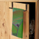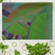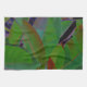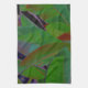 Retrotropiska vävnader, djupa gröntar mot lila - Det ursprungliga löven av MaeFlowers på detta kökshandduk ser ut som vintage i ett tropiskt mönster av mörk, muterat färg. Det började som ett originalfoto av mjuk grönt löv på träd i trädgården. Efter vissa digitala effekter markeras de mörk grönt löven med en ljusare, tropisk grönt och dammsuga akvarier, med rostbruna skuggor. Löven fyller designen mot bakgrund av djup lila.