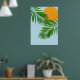 Denna poster har en minimalistisk utformning av eleganten med ett tropiskt sol bakom handflatan löv på blå himmel.