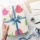 Förpacka dina presenter i glatt, modern blomstil med detta enkla tulpanmönstrade presentpapper med djärka orange, röda och rosa blommor. Perfekt för födelsedagar, vårfirande, mors dag eller någon annan tillställning som kräver en fräsch och färgrik touch