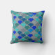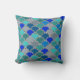 Retro Turcos Blue Teal Grått Scales Mönster Kudde