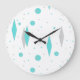 Denna Retro Turcos Diamonds and Starbursts Wall Clock (stor utskrift) mönster är ett nytt upptag på vintagen stil. Den har kitschi, grått-stjärnor på turkos polka dots, omgivande geometriska, turkotiska och grått-diamantformer. Anpassa bakgrunden till färg på denna moderna produkt i mitten av århundradet om du känner dig djärv, eller lämna den vit om subdued är mer ditt stil. Du är säker på att njuta av vår hyllning till 1950-talet. Köp det här idag och var den kallaste katten på ditt block.