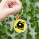 Retro Turntable Graphic in Black Rund Silverfärgad Nyckelring