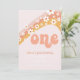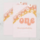 Retro inspirerad vild en första födelsedagsinbjudan med 70-talsstil tusensköna och boho-typsnitt och färger.