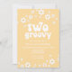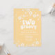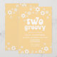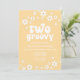 Två Groovy Retro-inspirerad andra födelsedagsinbjudan med 70-talsstildaisy och boho-teckensnitt och färger.