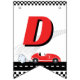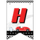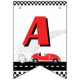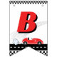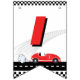 Två snabba röda bilnöjesracerbilsbanderoller för tävla 2: a födelsedagsbuntningen.