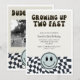 Coola och roligt barn Retro-tema 2:a födelsedag med Coola retro stilar med kontrollerad mönster och lycklig ansikteTexten säger "Growing Up Two Fast". Perfekt för en pojkes födelsedagsfest. Kort med illustration av en vintage svart och vit utcheckad mönster. I texten står det: "Uppväxt två gånger snabbare".