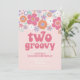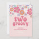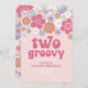 Retro Two Groovy Rosa Blommig Inbjudan