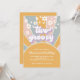 två Groovy Retro Sunshine inspirerade födelsedagsinbjudan med 70-talsstil tusenskönor och boho-typsnitt och färger.