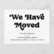 Denna enkla, visuella kungörelse för svart och vit flytta innehåller en återdekorativ text som säger "vi har flyttat". Ett snyggt för att ditt nya hem adress med familj och vänner!