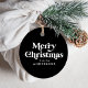 Moderna julmärkord med texten "God jul" i vit text i stil med svart bakgrund. Anpassa framsidan av de svarta och vita helgdag till favorittaggar med ditt namn eller din anpassningsbar. Baksidan av märkrn visningar ditt anpassningsbar-meddelande. Designad att samordna med vår Retro Typography-julsamling.